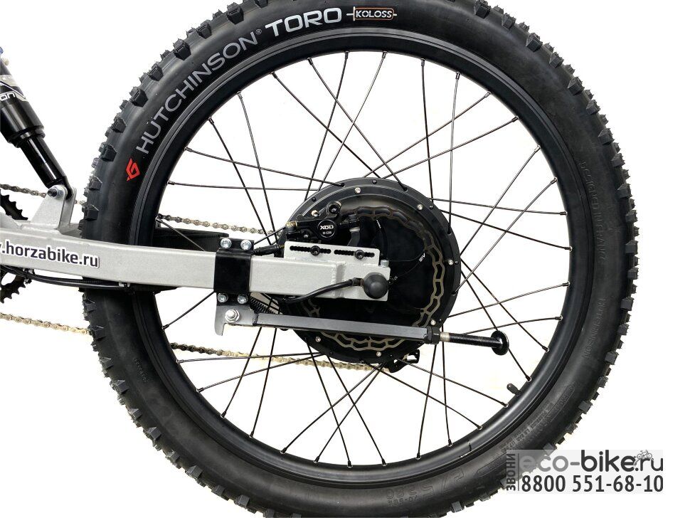 • оснащен 1500 ваттным мотором, разгоняющий велосипед до 60 км/ч;